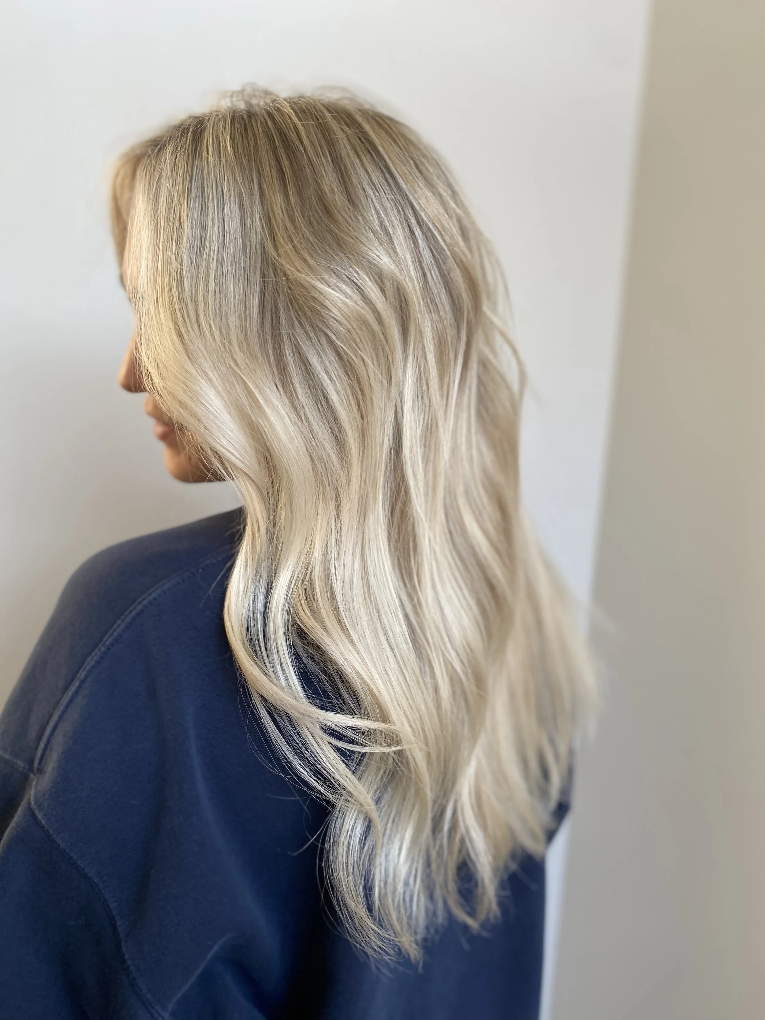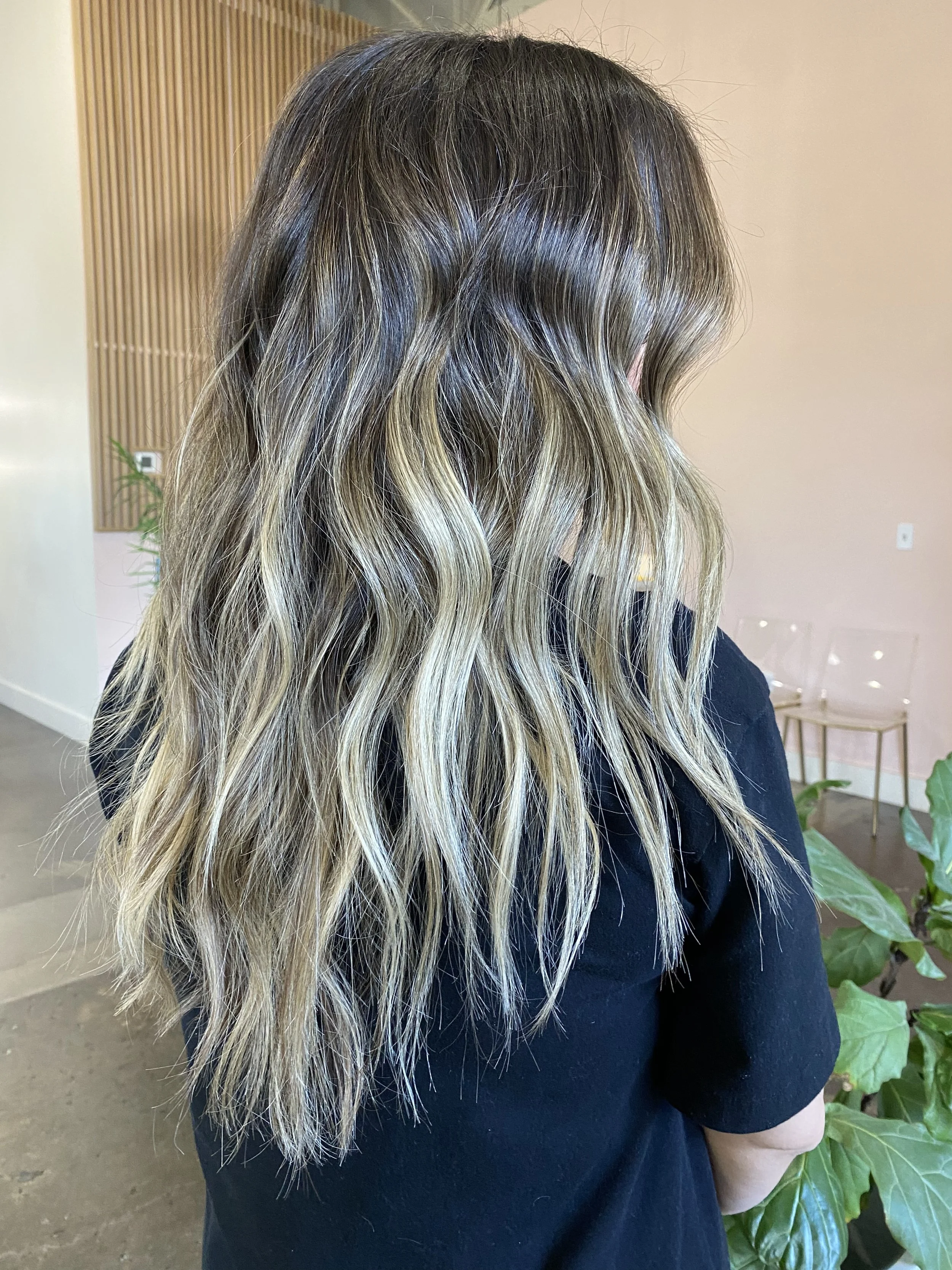 Full Foil Package utilizing babylights and root melting for blended lived-in blonde! Client’s first visit. 3-4 month maintenance.